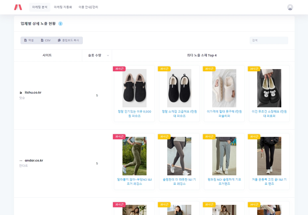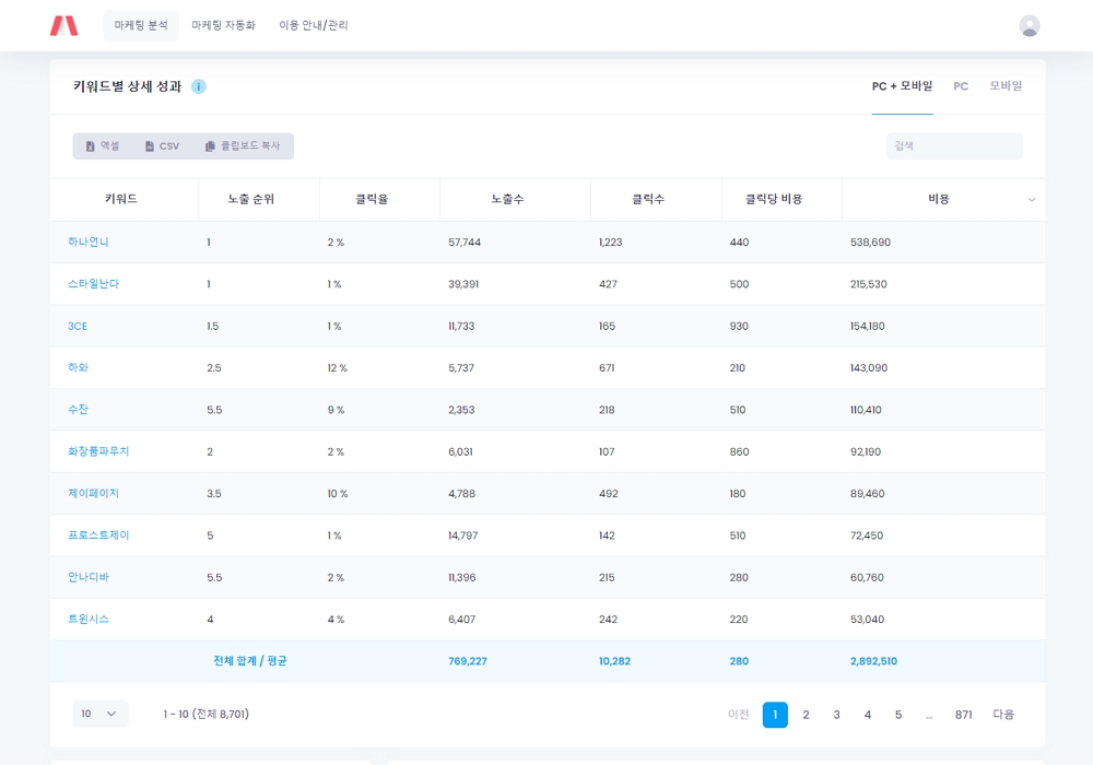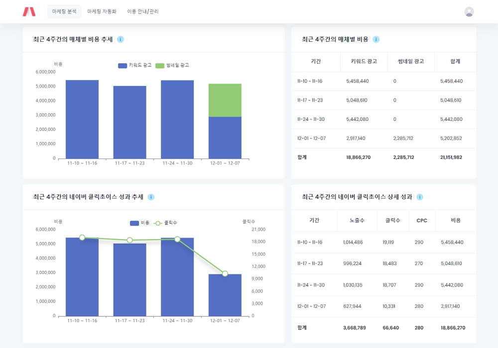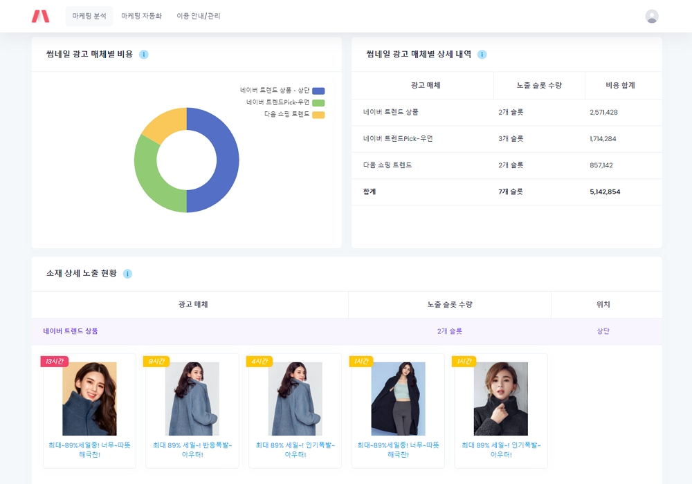 키워드 광고 외에 썸네일 광고 매체의 분석이 가능한게 매력적 입니다.