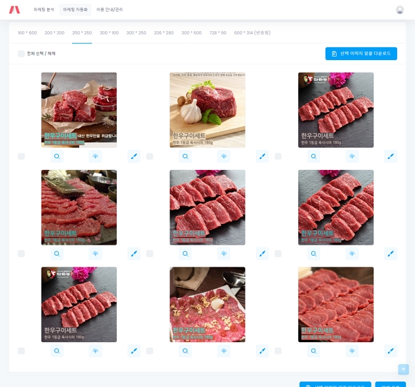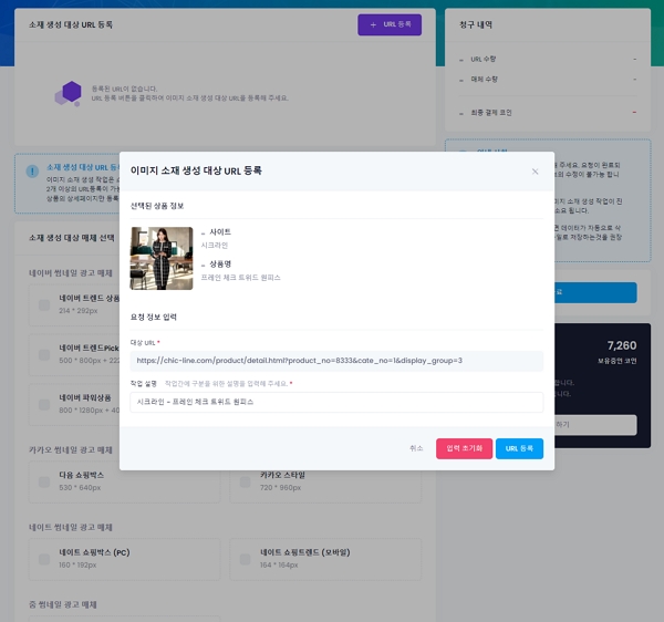 상세페이지 URL만 입력하면 올어바웃애드의 인공지능이 이미지를 분석하여 10여개 국내 주요 쇼핑광고 매체의 소재를 자동으로 만들어 드립니다.