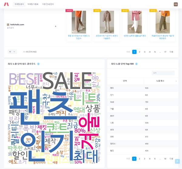 마케팅 분석 이하 모든 메뉴는 마케팅 분석 이용권을 코인으로 구매한 이후 사용 가능 합니다.